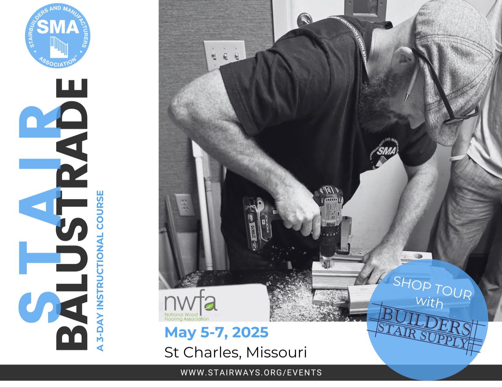 The Stairbuilders and Manufacturers Association (SMA) is an invaluable resource for stair builders across the nation. Membership in the SMA guarantees stair industry professionals access to resources that include continuing education opportunities, the latest stairway research, and the most recent developments in building codes and techniques. The SMA publishes Visual Interpretations of the IRC Stair Building Codes. Complex technical code language is simply explained through drawings and pictures. Laymen and professionals alike praise this document that provides understanding for all that use the the International Residential Code. The first 100 visitors to stop by our booth will recieve a FREE copy or shop the SMA Store to purchase your VI today! Are you already installing treads and risers for your customers? Add code compliant stairs and railings to your business offerings after learnign from the SMA experts at our Stair Balustrade instructional class. This 3-day, hands-on course teaches you core design and installation techinques for stairways. Find more information online!